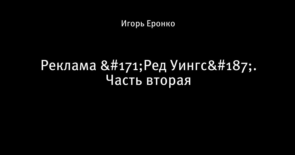 5 января 2011, 13:26 Реклама «Ред Уингс». Часть вторая Первую часть вы можете посмотреть тут. Автор Игорь Еронко Этот пост опубликован в блоге на Трибуне Sports.ru. Присоединяйтесь к крупнейшему сообществу спортивных болельщиков! Другие посты блога Айс-ТВ