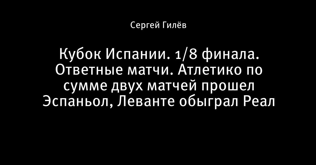 Кубок Испании. 1/8 финала. Ответные матчи. Атлетико по сумме двух матчей прошел Эспаньол, Леванте обыграл Реал