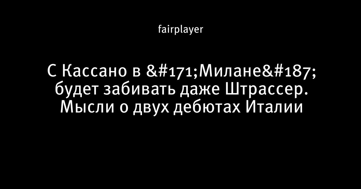 С Кассано в «Милане» будет забивать даже Штрассер. Мысли о двух дебютах Италии