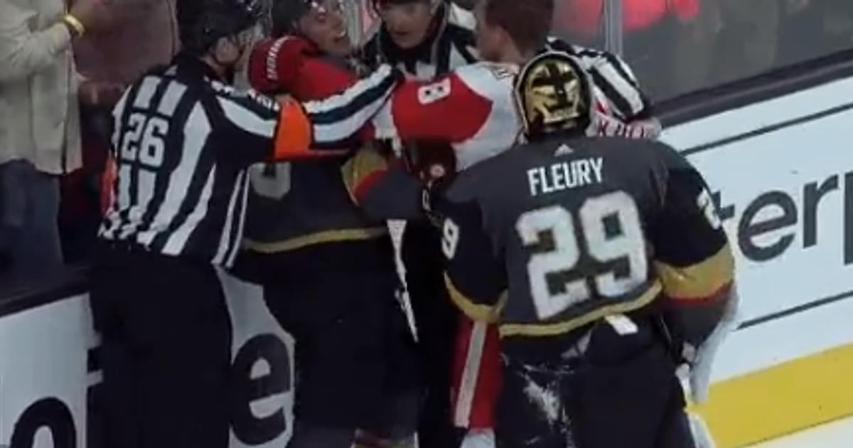 Marc-Andre Fleury trolling last night. Skates up behind Justin Abdelkader, undoes his pants strap and skates away pic.twitter.com/fhBCow5Yl9