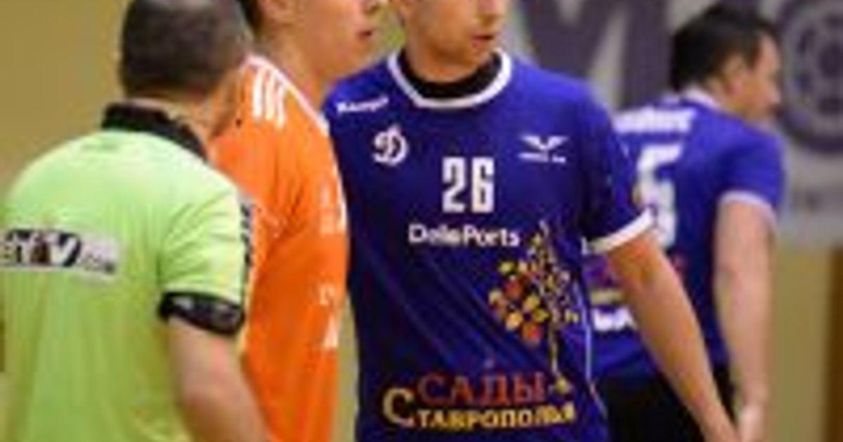 Подопечные Клёнова не разочаровали. Заряжаясь энергией от трибун динамовцы сразу взялись за дело. И если в начале игры литовцы достойно сопротивлялись и отвечали голевыми атаками, то к концовке первой половины матча преимущество динамовцов начала возрастать, как по игре так и по счету. Вновь кураж у хозяев поймал голкипер Антон Заболоцкий, показывающий в начале этого сезона очень хорошую игру. Выделялись из полевых игроков Иван Некрасов, Антон Отрезов и Антон Волков. Но больший вклад в первом тайме внес Иван Харитонов проведя четыре голевых броска подряд и сделал большой вклад в комфортный счет перед перерывом, 17:10 после свистка латвийского арбитра.