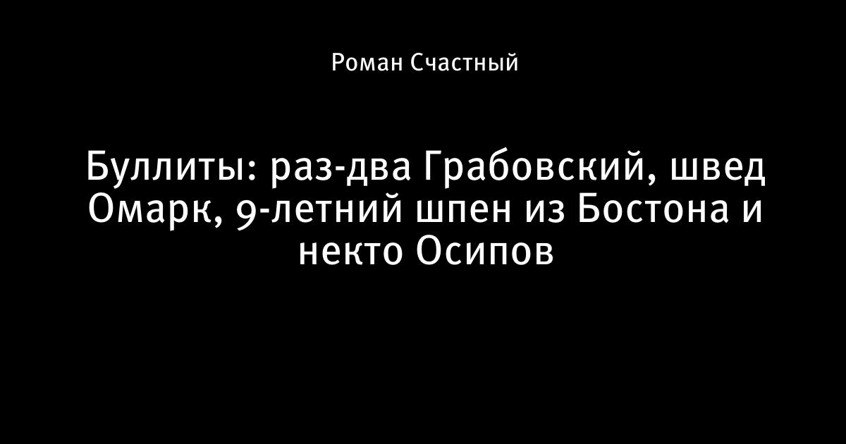 Буллиты: раз-два Грабовский, швед Омарк, 9-летний шпен из Бостона и некто Осипов