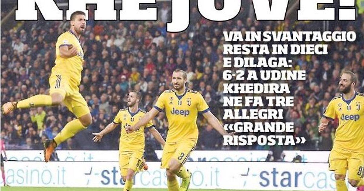 Всё началось с пропущенного гола, остались вдесятером и разошлись: 6:2 в Удине, Хедира забил три. Аллегри: «Отличный ответ».