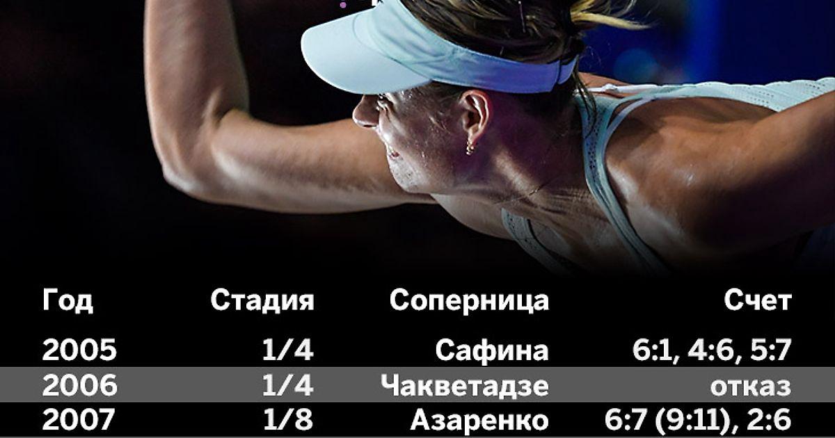 Да, в 2005-м Мария добралась до четвертьфинала, но второй круг она прошла лишь благодаря травме немки Анны-Лены Гренефельд, которая подвернула ногу при счете 6:1, 4:2 в свою пользу. Так что вряд ли можно назвать ту победу полноценной.
