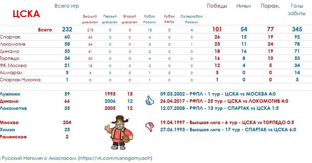 Самыми крупными успехами в дерби всея Москвы ЦСКА может похвастаться разгромами #Торпедо-ЗиЛ в первом туре сезона 2002 года (тогда у ЦСКА был домашней ареной стадион имени Стрельцова) и Локомотива в 2017 со счетом 4:0, а также гостевая победа над Спартаком в 2008 - 1:5.