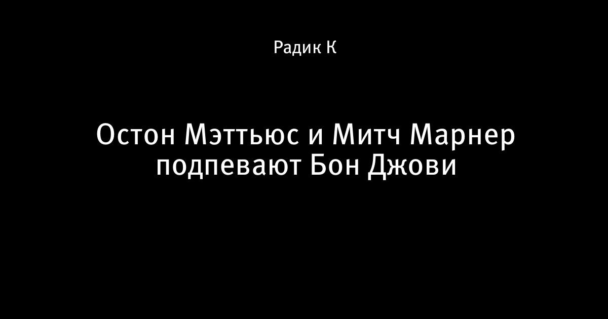 19 октября 2017, 22:02 Остон Мэттьюс и Митч Марнер подпевают Бон Джови Автор Радик К Этот пост опубликован в блоге на Трибуне Sports.ru. Присоединяйтесь к крупнейшему сообществу спортивных болельщиков! Другие посты блога Айс-ТВ Митч Марнер Остон Мэттьюс Торонто НХЛ