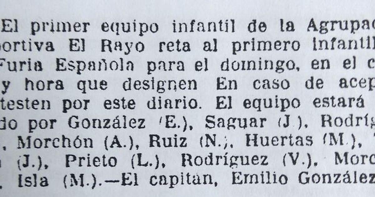 Матч против Фурия Эспаньола не состоялся потому что у них уже была договоренность о матче с командой Спортинг Клуб Галилео на этот же день. В этой ситуации Райо решил провести матч, так же на уровне детских команд, против команды Депортиво Де Леганес, но этот матч так же не состоялся, причиной отмены как в заметке для прессы писал секретарь клуба Хосе Сагуар стала «подготовка к открытию поля». В качестве контактов секретарь указал свой личный адрес на улице Кармен, дом 1.