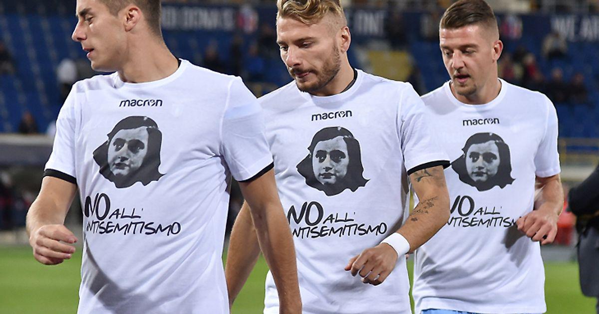 В Италии продолжается скандал, спровоцированный фанатами «Лацио». Перед матчем с «Болоньей» игроки команды вышли на разминку в футболках с портретом Анны Франк.