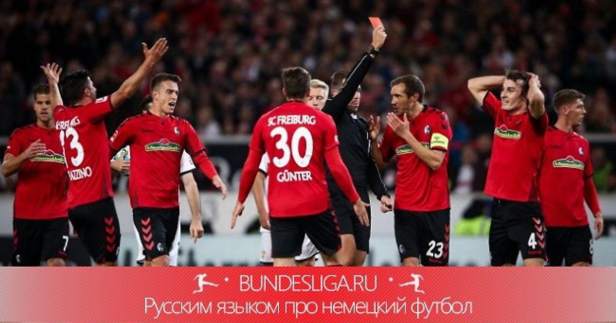 Такой неспешный темп игры пришелся не по вкусу арбитрам матча – главному судье Тобиасу Штиллеру и видеоассистенту Феликсу Цвайеру. Сыграл было рукой возле своей штрафной защитник гостей Сейжу, однако просто свистнуть нарушение и разобраться с эпизодом сразу для Штиллера показалось слишком скучным. Поэтому он дождался, когда эпизод будет заигран, а сам «Фрайбург» убежит в атаку, и только тогда вместе с Цвайером решили вспомнить про тот момент. Посмотрев повтор, Штиллер показал «красную» турецкому защитнику и назначил штрафной в ворота гостей.