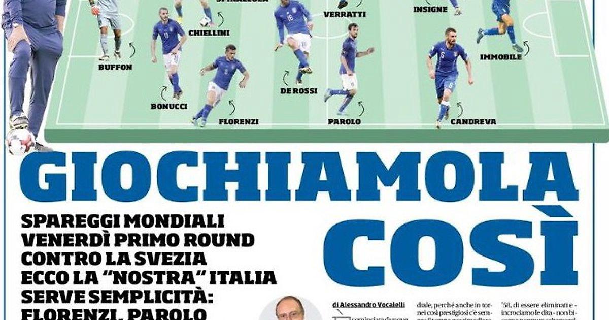 Стыковые матчи Чемпионата Мира, в пятницу первый раунд против Швеции. Вот «наша» Италия, необходима простота: Флоренци, Пароло, Верратти и Инсинье, каждый на своём месте.