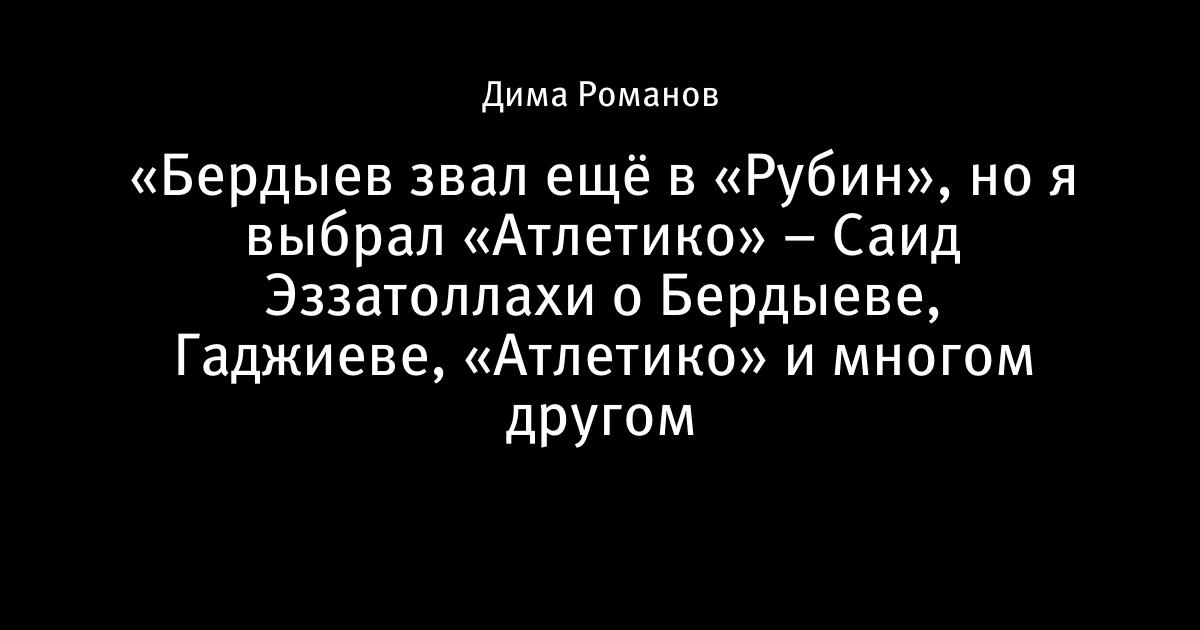 «Бердыев звал ещё в «Рубин», но я выбрал «Атлетико» – Саид Эззатоллахи о Бердыеве, Гаджиеве, «Атлетико» и многом другом