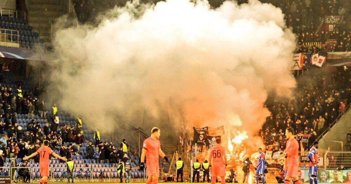 Сектор кс вчера в Базеле. Количество на матче - около 1500. Помимо русских болельщиков армейцев приехали поддержать фанаты Видзева, Руха и Партизана.