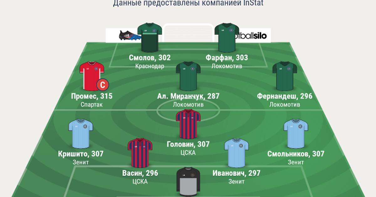 Лучшим клубом первой половины чемпионата РФПЛ 2017-18 стал "Зенит" со средним общекомандным рейтингом InStat Index, равным 278 баллам. Худшая команда - "СКА-Хабаровск", набравшая лишь 235 баллов.