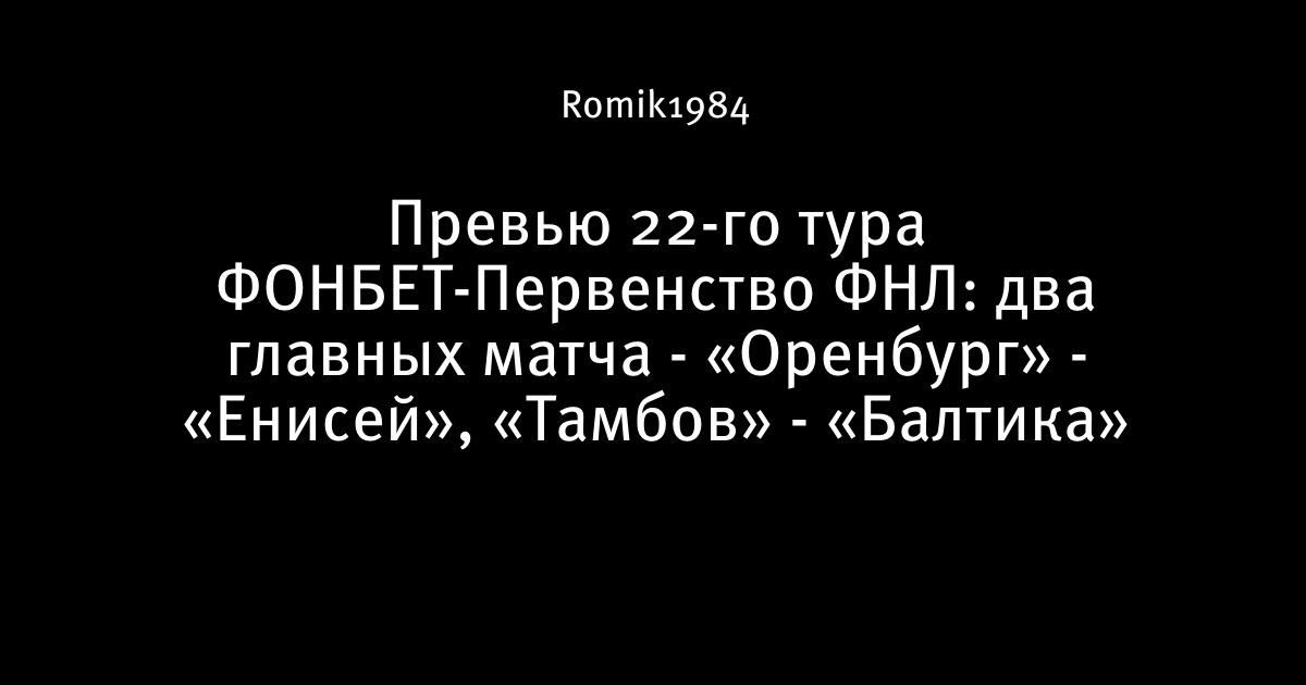 Превью 22-го тура ФОНБЕТ-Первенство ФНЛ: два главных матча - «Оренбург» - «Енисей», «Тамбов» - «Балтика»