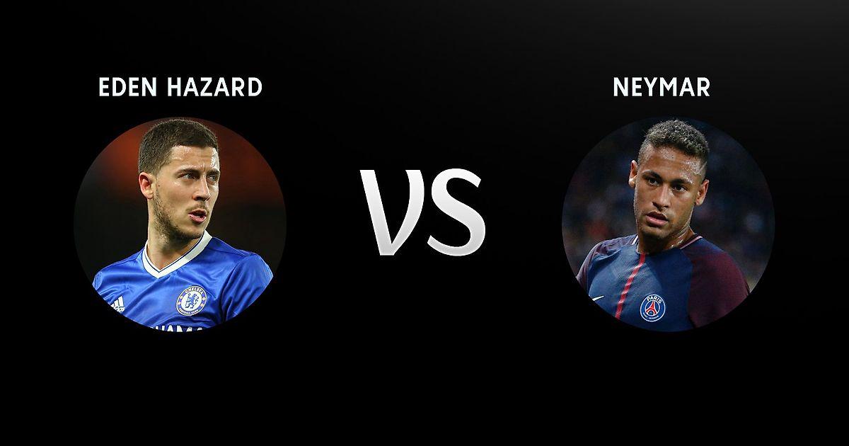Карьера Неймара в профессиональном футболе началась в 2009 году и за это время он успел поиграть в чемпионатах Бразилии, Испании и Франции. За все это время он провел 229 матчей, в которых забил 127 мячей. Эден Азар, в свою очередь, начал карьеру в французском Лилле, в 2012 году стал игроком Челси, где играет и по сей день. За все это время Эден провел 322 матча, забив в них 93 мяча.