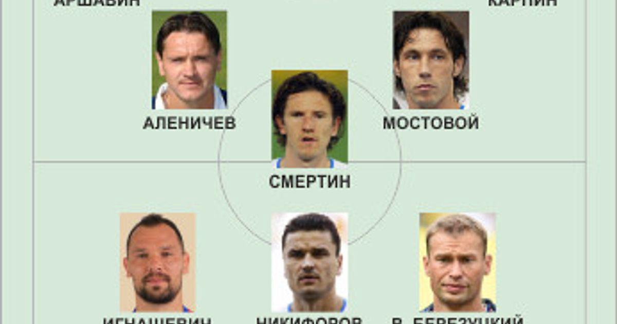 Виктор Онопко (87 матчей), Андрей Аршавин (39), Алексей Смертин (19), Роман Широков (19), Сергей Семак (17), Василий Березуцкий (17), Игорь Денисов (12), Игорь Акинфеев (10), Станислав Черчесов (6), Игорь Шалимов (5), Дмитрий Лоськов (5), Александр Бородюк (4), Евгений Алдонин (4), Дмитрий Харин (3), Валерий Карпин (3), Егор Титов (3), Юрий Никифоров (2), Сергей Овчинников (1), Вячеслав Малафеев (1), Алексей Березуцкий (1), Игорь Чугайнов (1), Сергей Игнашевич (1), Андрей Тихонов (1), Дмитрий Аленичев (1), Игорь Добровольский (1), Александр Мостовой (1), Дмитрий Хохлов (1), Игорь Семшов (1), Игорь Колыванов (1), Федор Смолов (1).