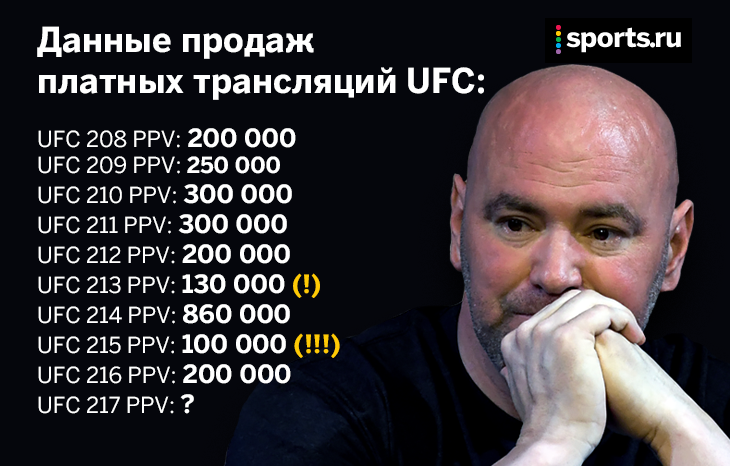 2017 год оказался для UFC коммерчески провальным. Чтобы убедиться в этом, просто взгляните на данные продаж платных трансляций:
