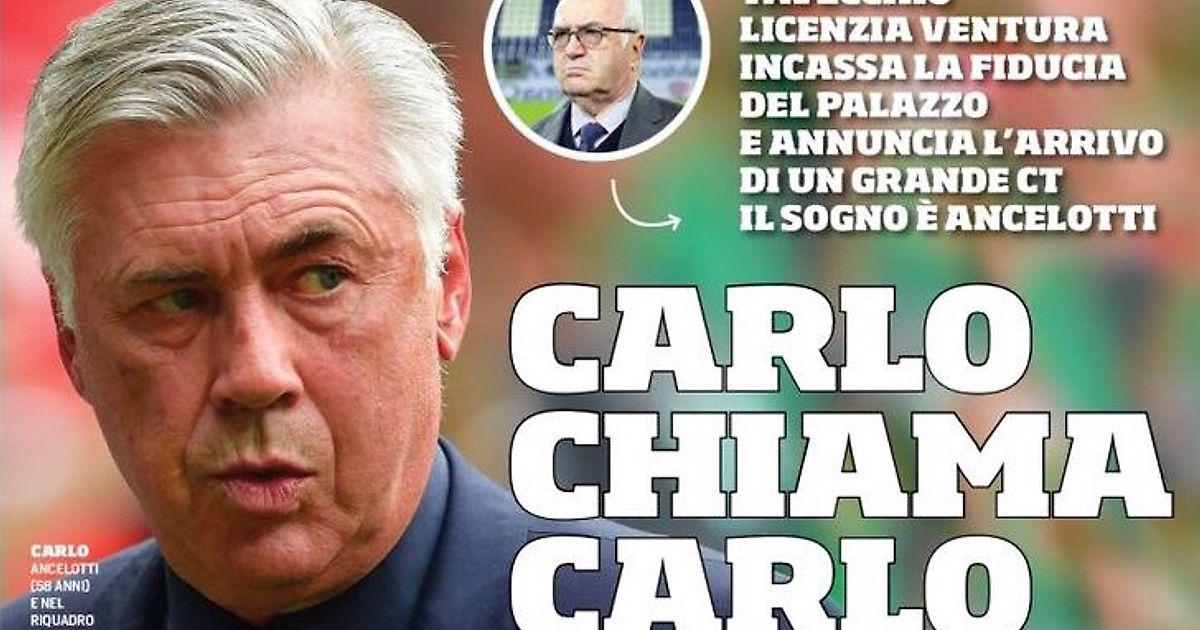 (И это не Анчелотти). Всё как предполагалось: Вентура уволен с 700 тысячами евро, между тем Тавеккьо не ушёл и рассчитывает убедить федеральный совет в понедельник, выбросив карту Анчелотти на роль главного тренера сборной. Томмази: «Немедленные выборы». Уливьери атакует Малаго. Между тем аргентинец Дриусси выкалывает глаза у Италии будущего.