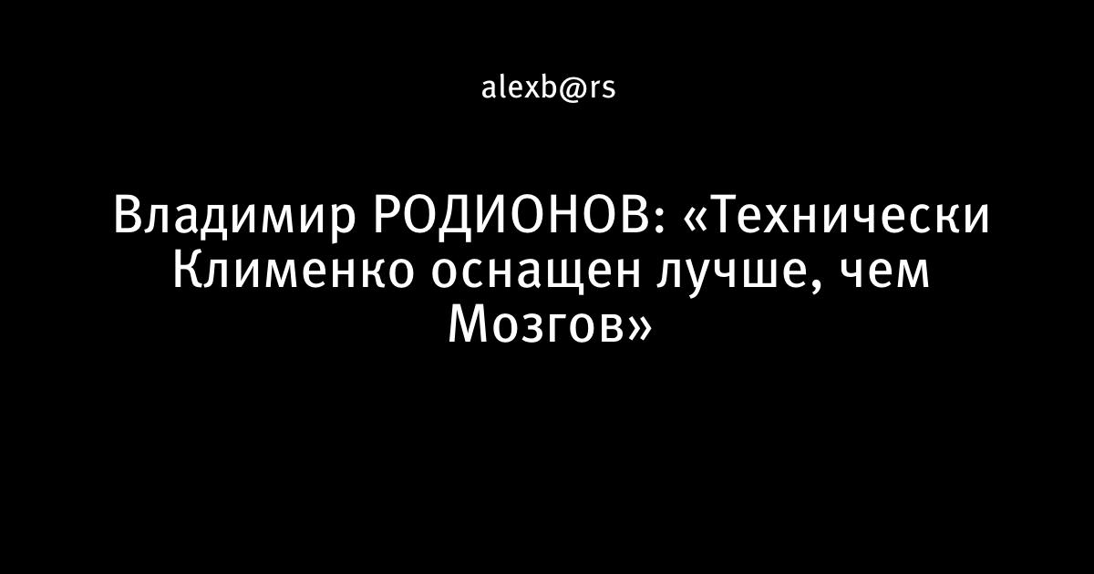 Владимир РОДИОНОВ: «Технически Клименко оснащен лучше, чем Мозгов»