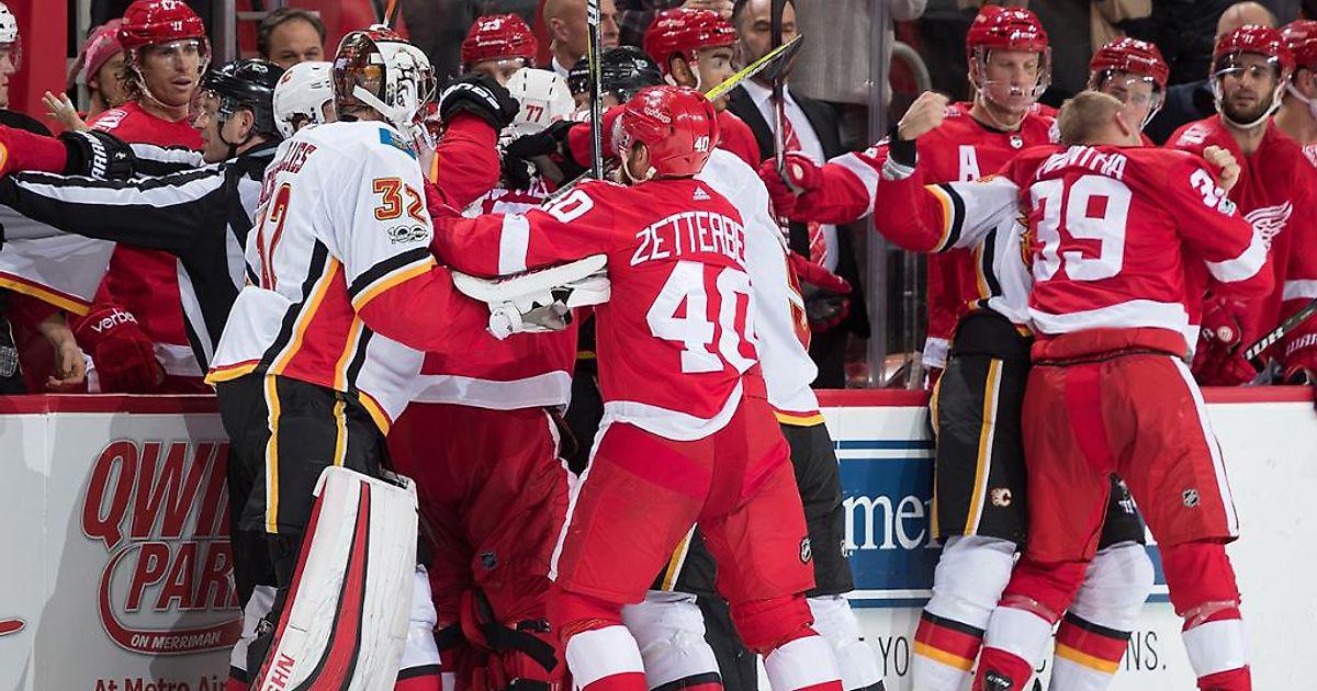 "Детройт Ред Уингз"-"Калгари Флэймз" 8:2.У хозяев по 3 очка набрали Энтони Манта (2+1),Андреас Атанасиу (2+1),Майк Грин (0+3) и Дилан Ларкин (1+2).Джимми Ховард отразил 26 бросков.В середине 3 периода произошла массовая драка-Люк Витковски против Бретта Кулака,Энтони Манта против Трэвиса Хамоника."Детройт" прервал серию из 2 поражений.