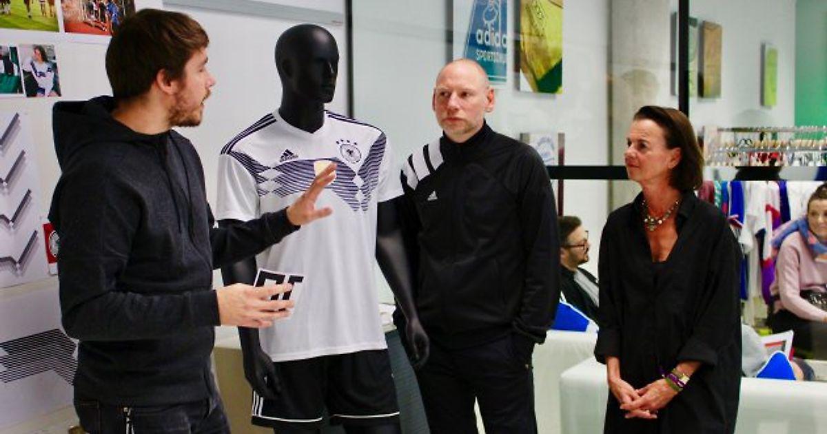 Послеобеденное время в штаб-квартире Adidas в Херцогенаурахе. Мы встретились с Юргеном Ранком, шеф-дизайнером компании, и Кристианом Бингером, дизайн-директором, ответственным за основу любой форменной футболки. Во время разбора архивов к нам присоединилась Ина Францманн, создательница первой цветной футболки сборной Германии для победного мундиаля в 1990-ом.