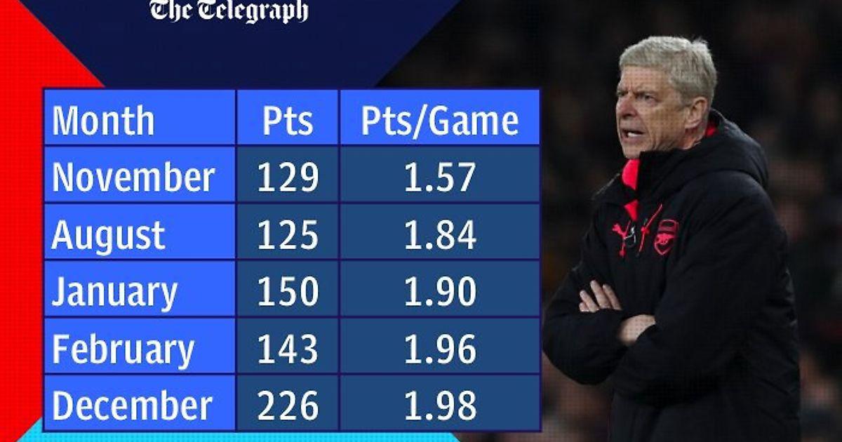 Традиционно ноябрь и начало декабря самые дождливые месяца в Британии. Несмотря на надлежащий уход футбольные поля размокают и для скоростных, атакующих команд играть на них становится очень тяжело. А для андердогов напротив очень удобно защищатся. Именно поэтому статистика Арсенал в этот период самая худшая