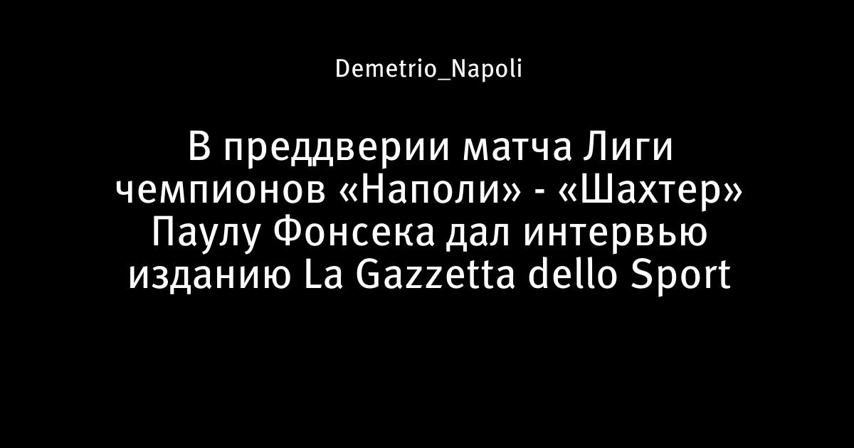 В преддверии матча Лиги чемпионов «Наполи» - «Шахтер» Паулу Фонсека дал интервью изданию La Gazzetta dello Sport