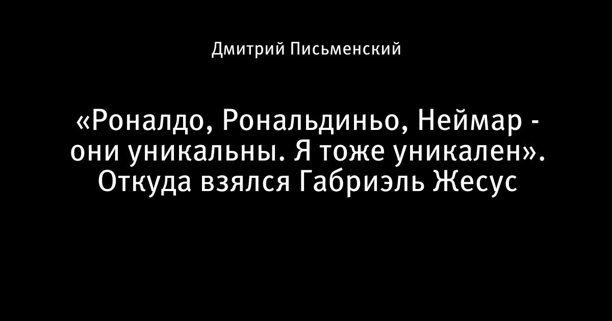 «Роналдо, Рональдиньо, Неймар - они уникальны. Я тоже уникален». Откуда взялся Габриэль Жесус
