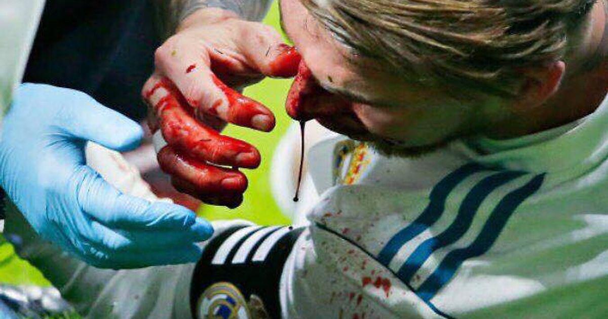 В матче прошедшего тура Примеры «Атлетико-Реал» Серхио Рамосу сломали нос в борьбе за мяч. У человека было жуткое кровотечение, а встречу игрок продолжить не смог.
