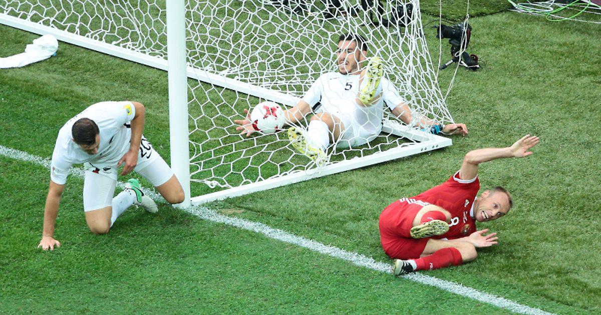 В числе прочих представлена фотография полузащитника сборной России Дениса Глушакова, отмечающего забитый мяч в ворота сборной Новой Зеландии в стартовом матче Кубка конфедераций.