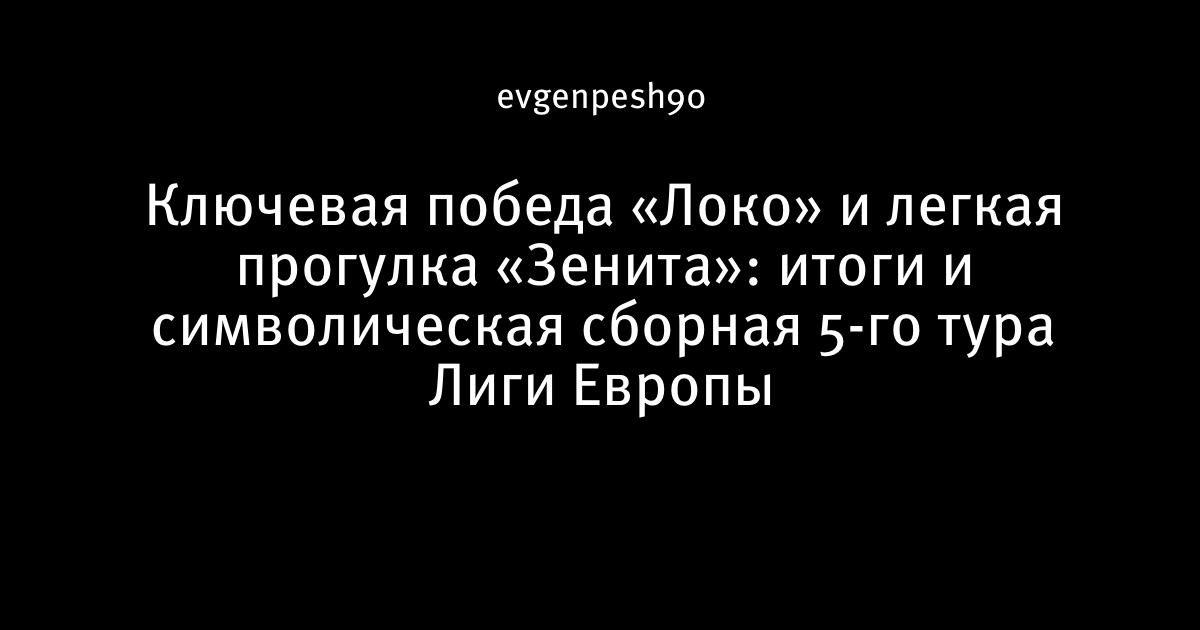 Ключевая победа «Локо» и легкая прогулка «Зенита»: итоги и символическая сборная 5-го тура Лиги Европы