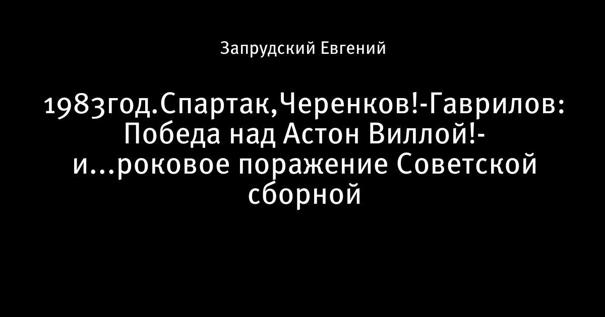 И это роковое поражение осени 1983, не только сборной СССР,но и всего советского футбола, увы, не могла скрасить даже такая, во-многом эпическая, победа, Спартака в гостях над недавним Королём европейского футбола- английской Астон Виллой...