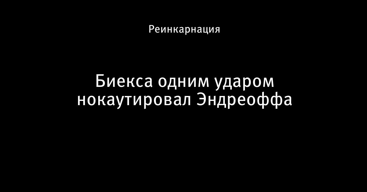26 ноября 2017, 11:49 Биекса одним ударом нокаутировал Эндреоффа Автор Реинкарнация Этот пост опубликован в блоге на Трибуне Sports.ru. Присоединяйтесь к крупнейшему сообществу спортивных болельщиков! Другие посты блога Айс-ТВ НХЛ