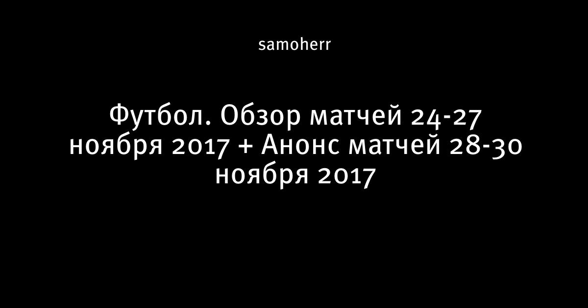 Футбол. Обзор матчей 24-27 ноября 2017 + Анонс матчей 28-30 ноября 2017