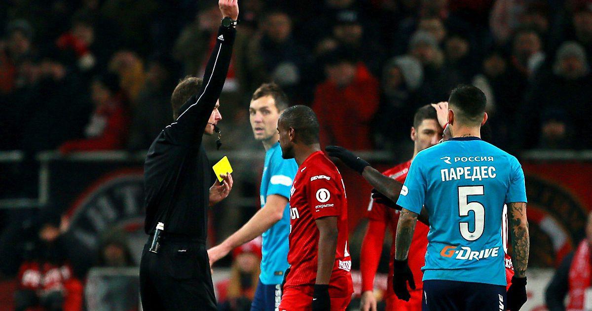 Их можно понять: шесть желтых карточек показал арбитр из Дмитрова игрокам красно-белых и всего две - зенитовцам. Заслуженно или нет - решать судейским экспертам, но некоторые эпизоды действительно вызывали вопросы. Например, момент со столкновением игрока петербургского клуба Эмилиано Ригони, уже сидевшегона «горчичнике», и защитника «Спартака» Дмитрия Комбарова мог закончиться для первого досрочным уходом с поля, однако Мешков решил иначе.