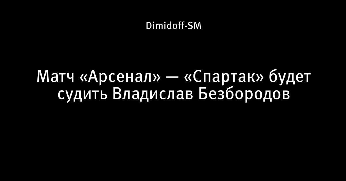 Главным судьей матча 19-го тура РОСГОССТРАХ Чемпионата России между «Спартаком» и «Арсеналом» назначен Владислав Безбородов.