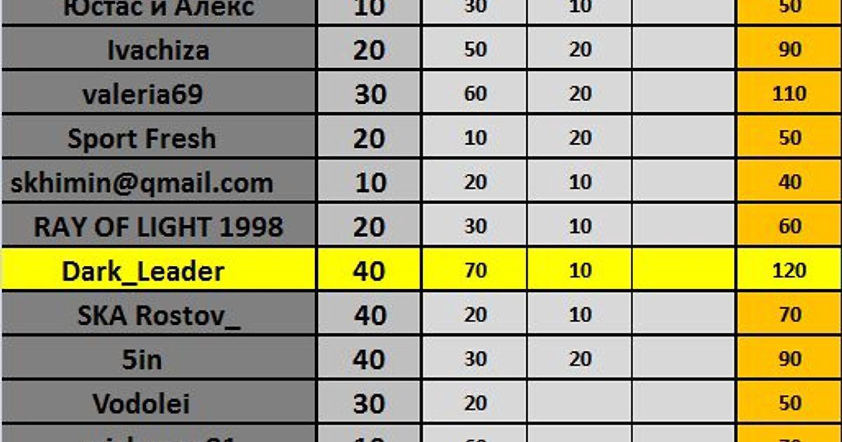 В таблице выделена тройка призеров. Пока лидирует Katbert261.