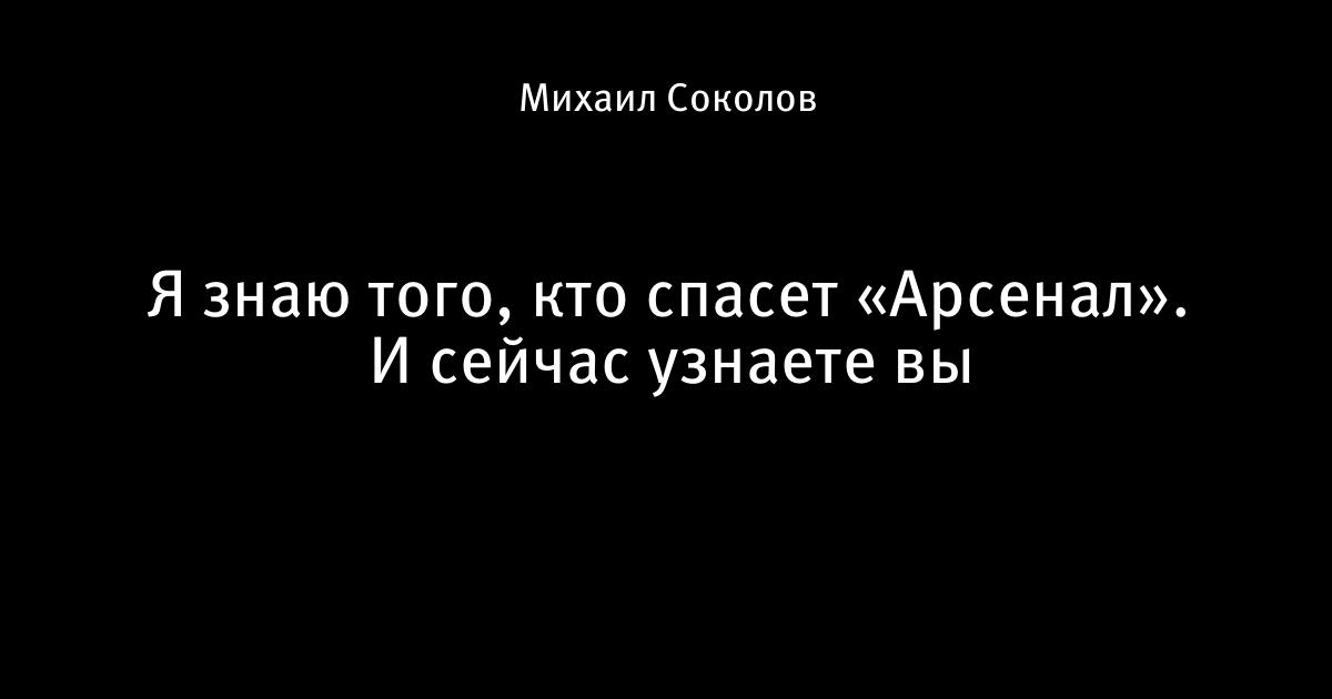 Я знаю того, кто спасет «Арсенал». И сейчас узнаете вы