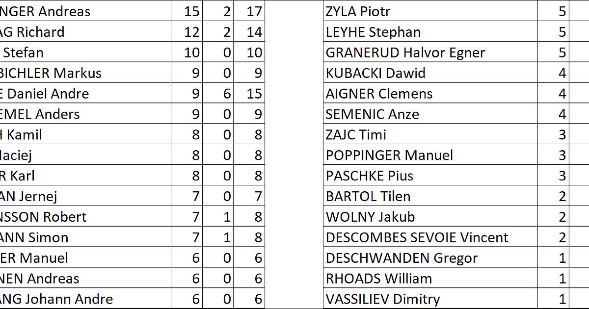 Бонусы за квалификацию: Танде - 3 очка, Веллингер - 2 очка, Амман - 1 очко