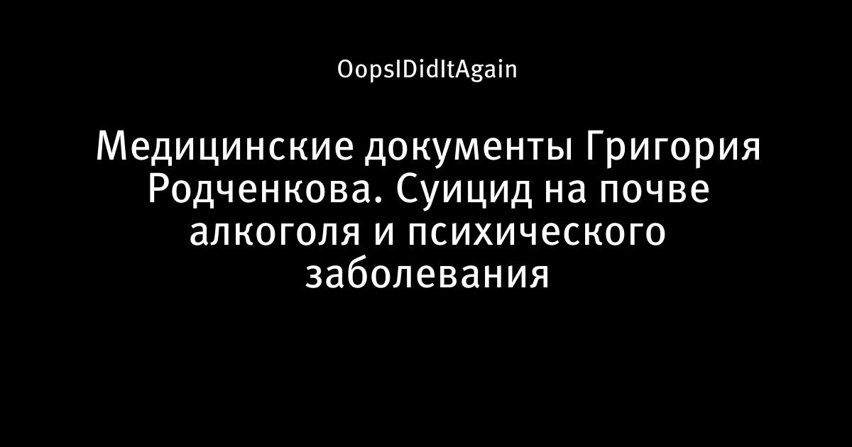 Медицинские документы Григория Родченкова. Суицид на почве алкоголя и психического заболевания