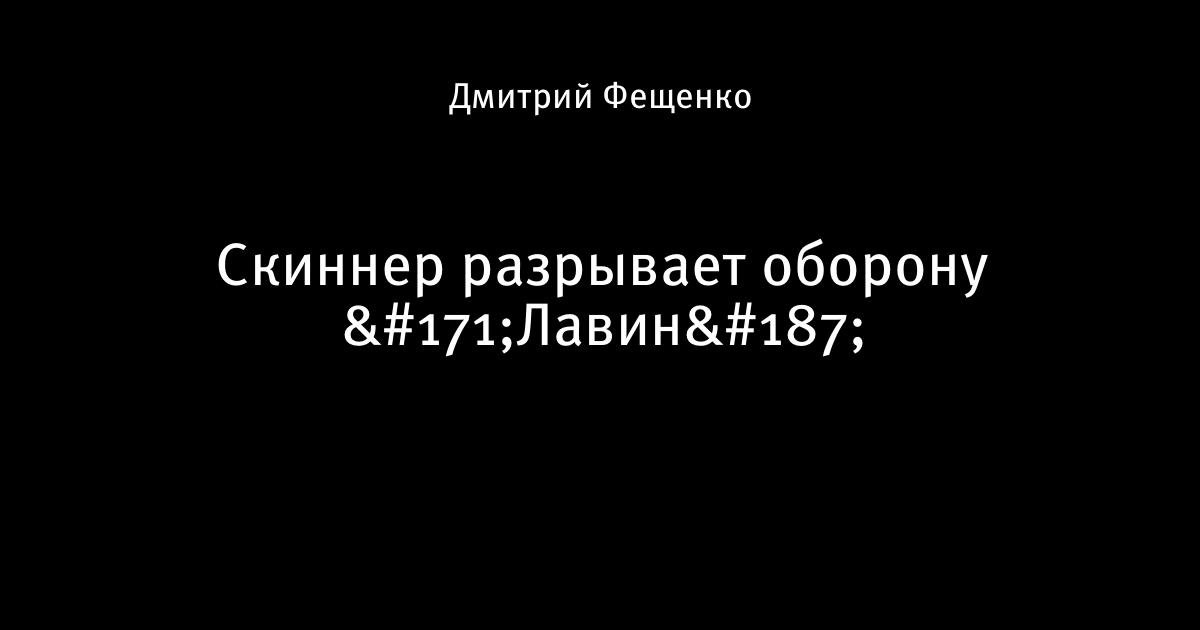 25 января 2011, 06:10 Скиннер разрывает оборону «Лавин» Автор Дмитрий Фещенко Этот пост опубликован в блоге на Трибуне Sports.ru. Присоединяйтесь к крупнейшему сообществу спортивных болельщиков! Другие посты блога Айс-ТВ
