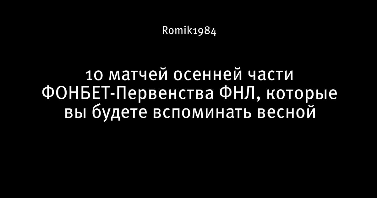 Закончилась первая часть ФОНБЕТ-Первенства ФНЛ, и под занавес календарного года все вспоминают лучшее, что хотелось бы оставить с собой во второй части сезона. Мы составили список из 10 лучших матчей, которые вы не забудете и весной. В него вошли не только матчи лидеров, но и, что еще важнее, встречи команд не слишком высокого уровня, которые за счет характера и азарта подарили своим болельщикам настоящий праздник футбола.