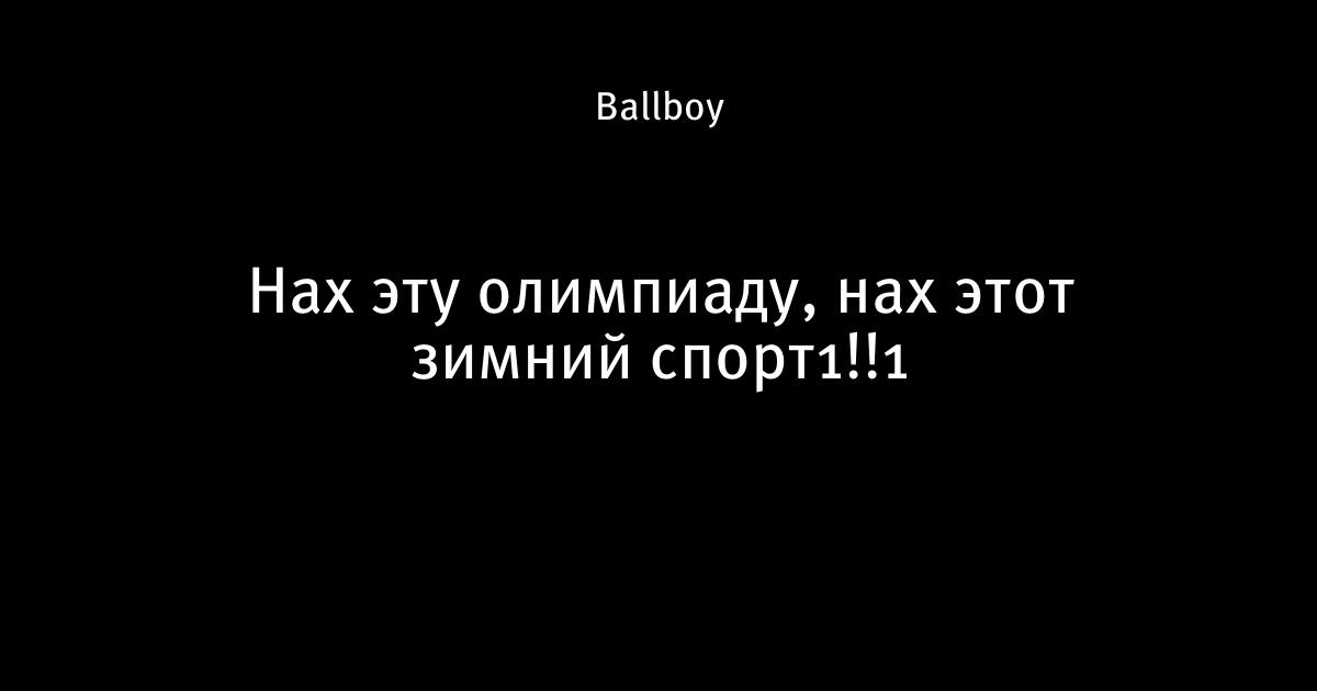 9 декабря 2017, 12:06 Нах эту олимпиаду, нах этот зимний спорт1!!1 Автор Ballboy Этот пост опубликован в блоге на Трибуне Sports.ru. Присоединяйтесь к крупнейшему сообществу спортивных болельщиков! Другие посты блога Ballboy Олимпиада-2026