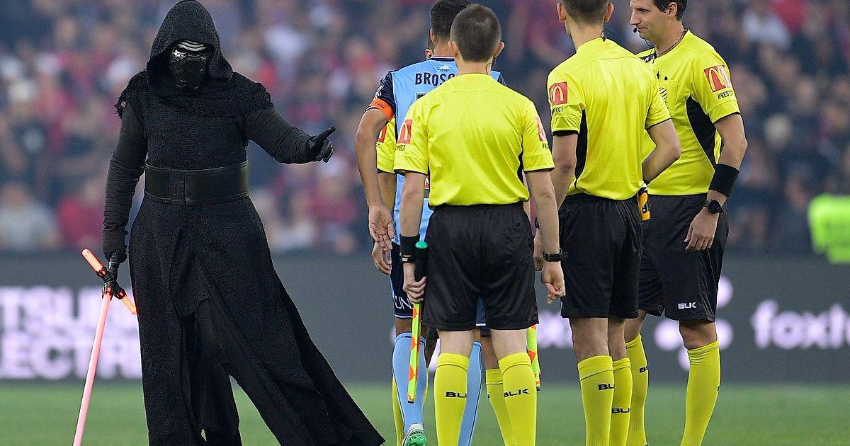 Один из главных злодеев новой трилогии «Звездные войны» – Кайло Рен, посетил матч высшей лиги Австралии по футболу: