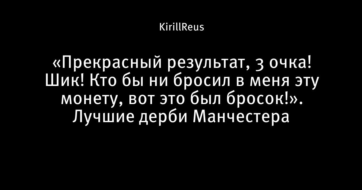 «Прекрасный результат, 3 очка! Шик! Кто бы ни бросил в меня эту монету, вот это был бросок!». Лучшие дерби Манчестера