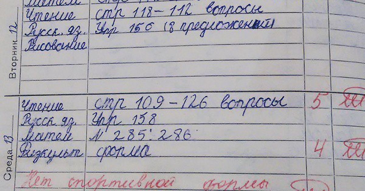 «Нет спортивной формы». Фото из школьного дневника Макса Мирного