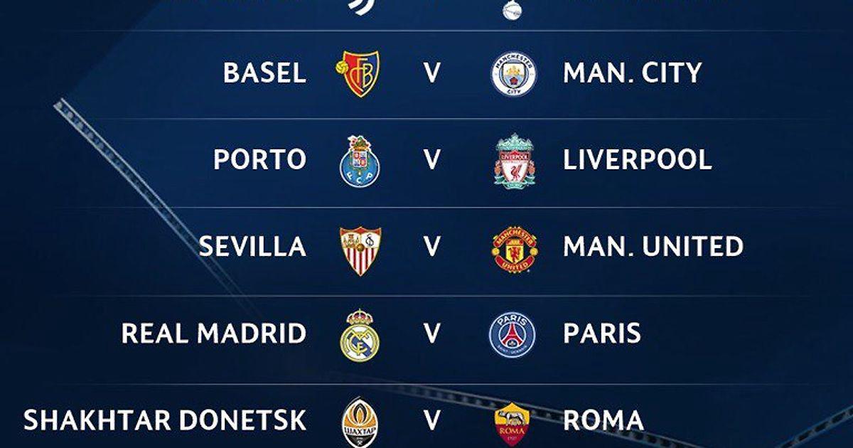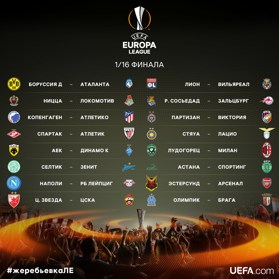 Результаты жеребьёвки 1/8 Лиги Чемпионов и 1/16 финала Лига Европы УЕФА