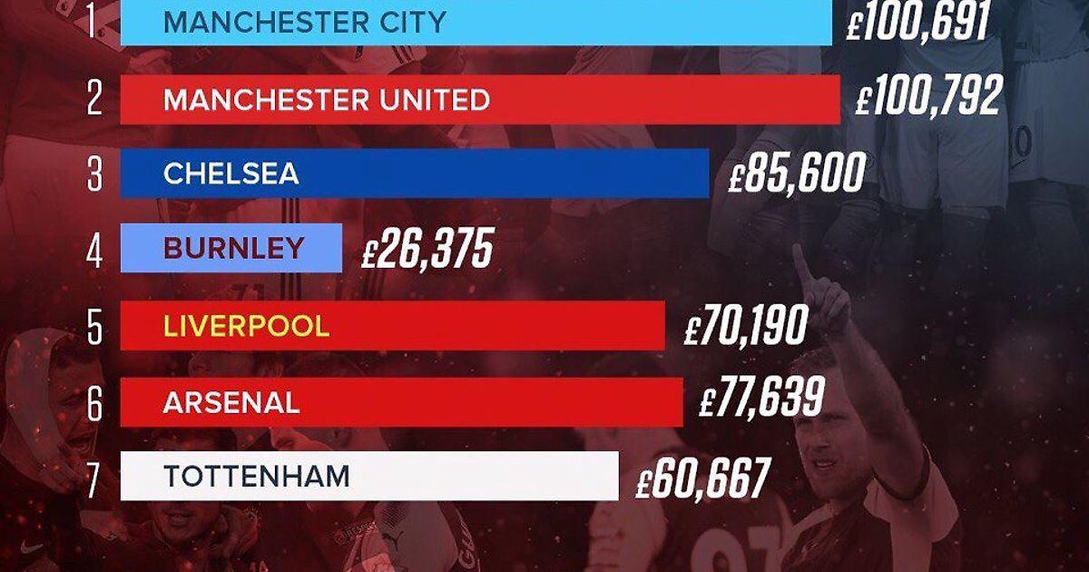 Сколько тратят в неделю клубы АПЛ на зарплату свои игрокам?