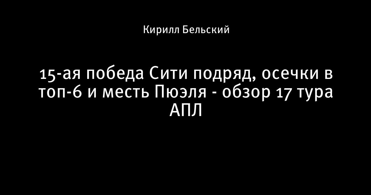 15-ая победа Сити подряд, осечки в топ-6 и месть Пюэля - обзор 17 тура АПЛ
