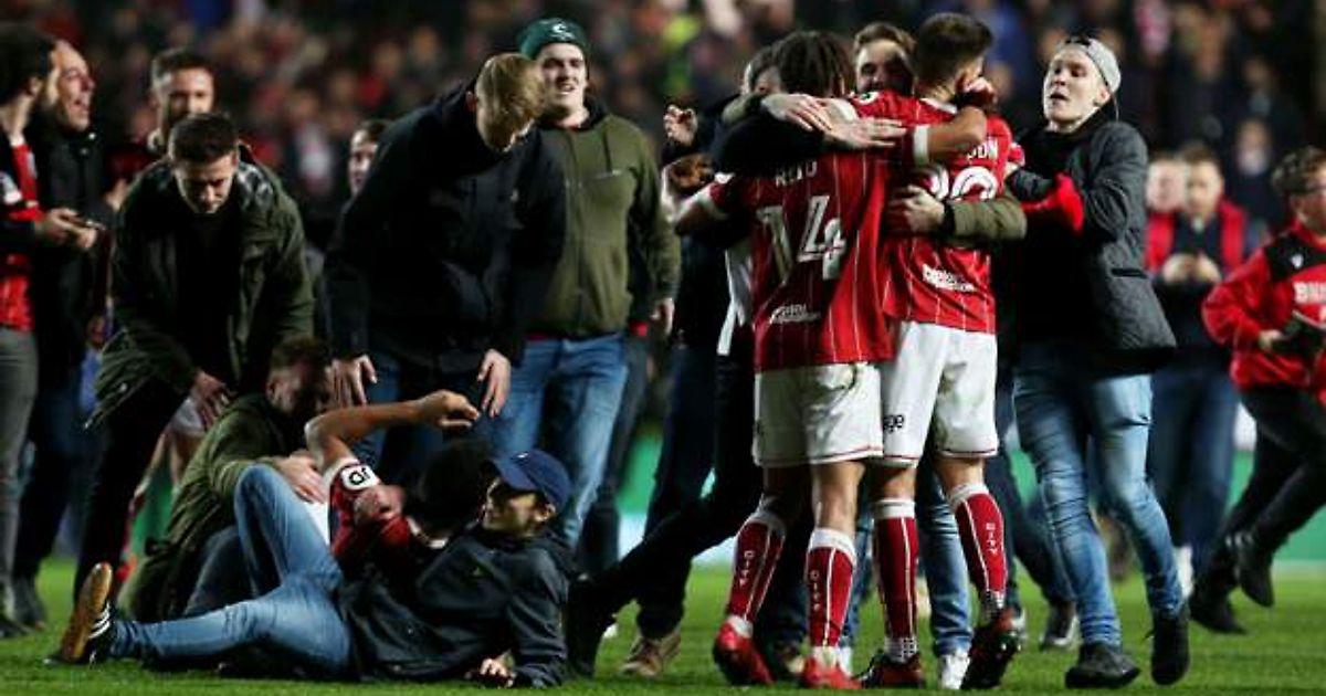 На фото: болельщики "Бристоля" выбежали на поле после победы команды над "Манчестер Юнайтед".
